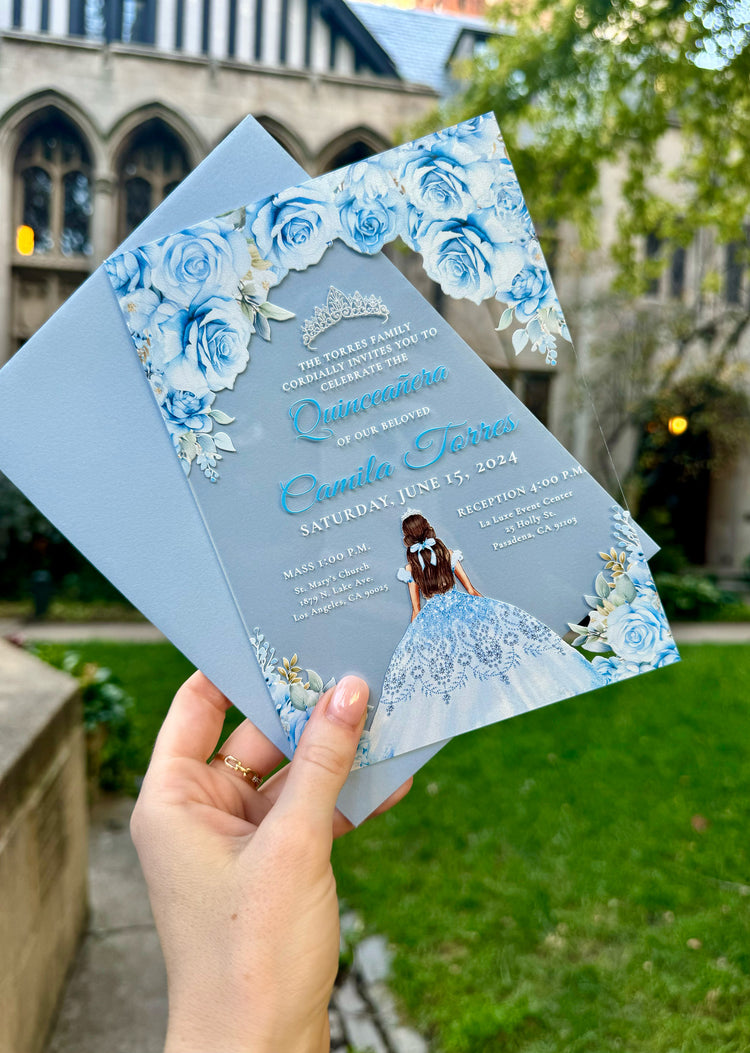 Mareli - Baby Blue Acrylic Quinceañera Invitations