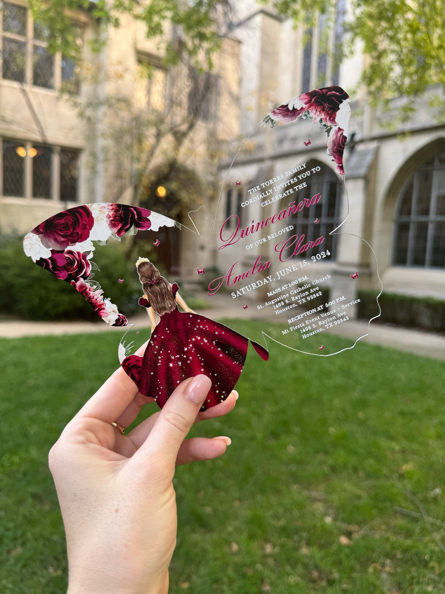 Amelia - Burgundy Acrylic Quinceañera Invitations