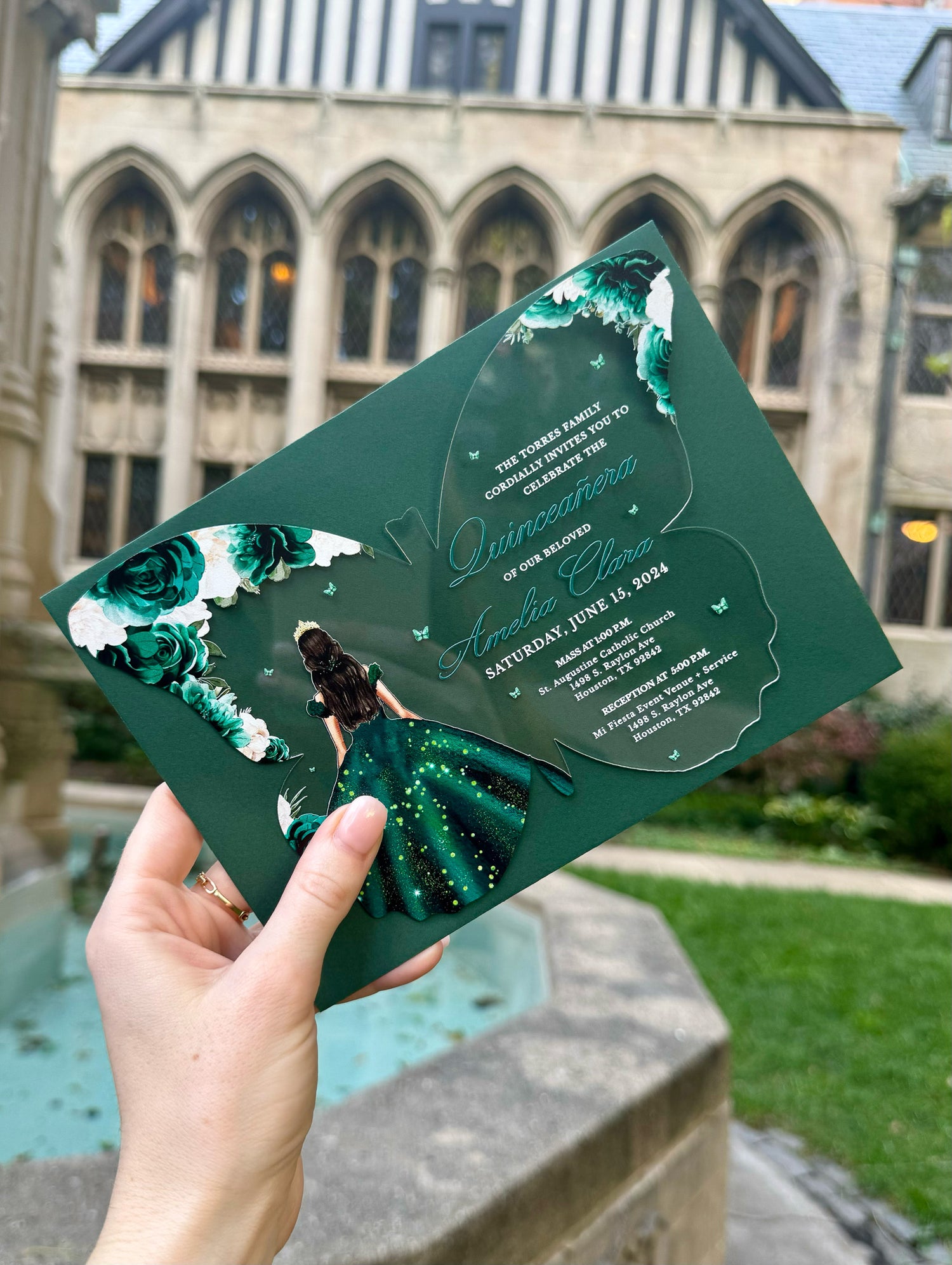Amelia - Emerald Acrylic Quinceañera Invitations