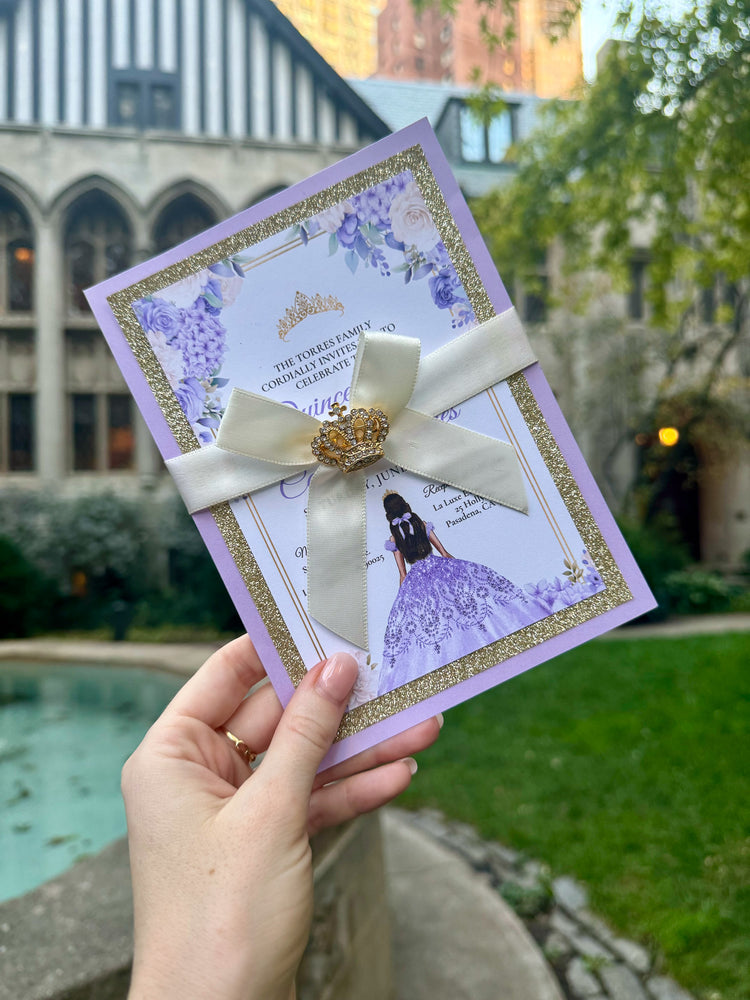 Carmela - Lavender and Gold Glitter Quinceañera Invitations