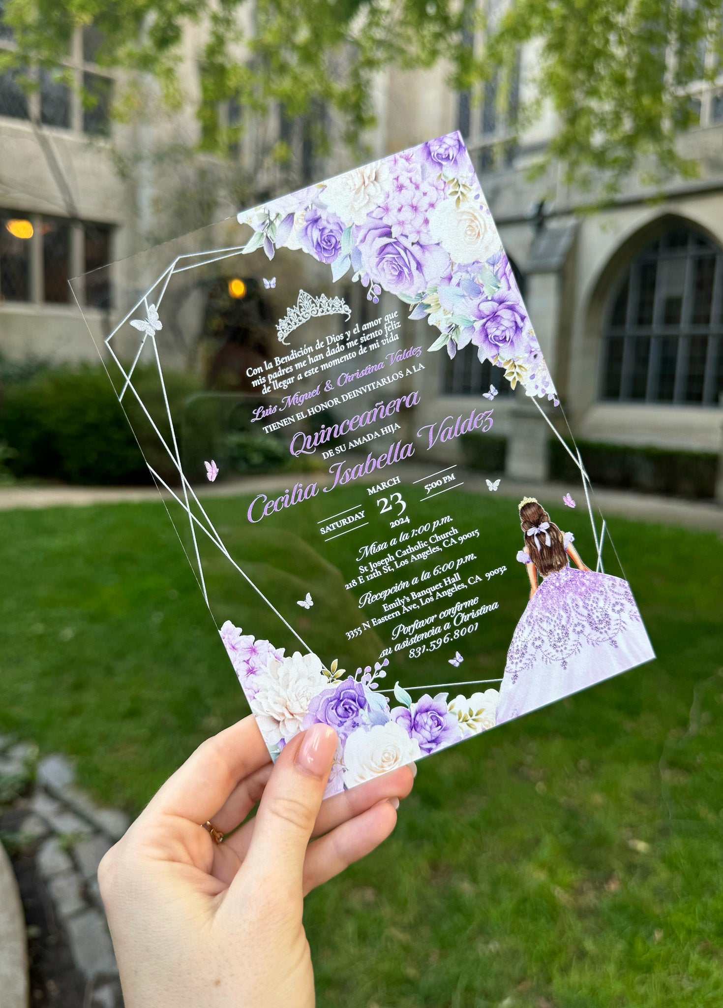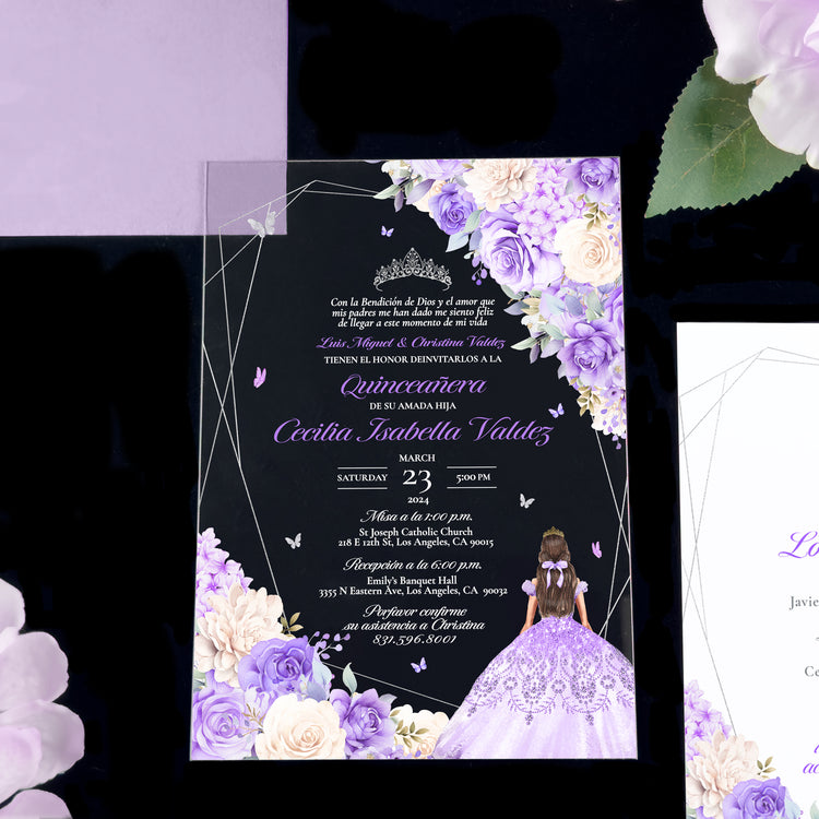 Celeste - Lavender Silver Acrylic Quinceañera Invitations