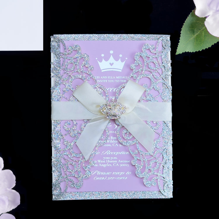 Josephine - Lavender and Silver Laser Cut Quinceañera Invitations