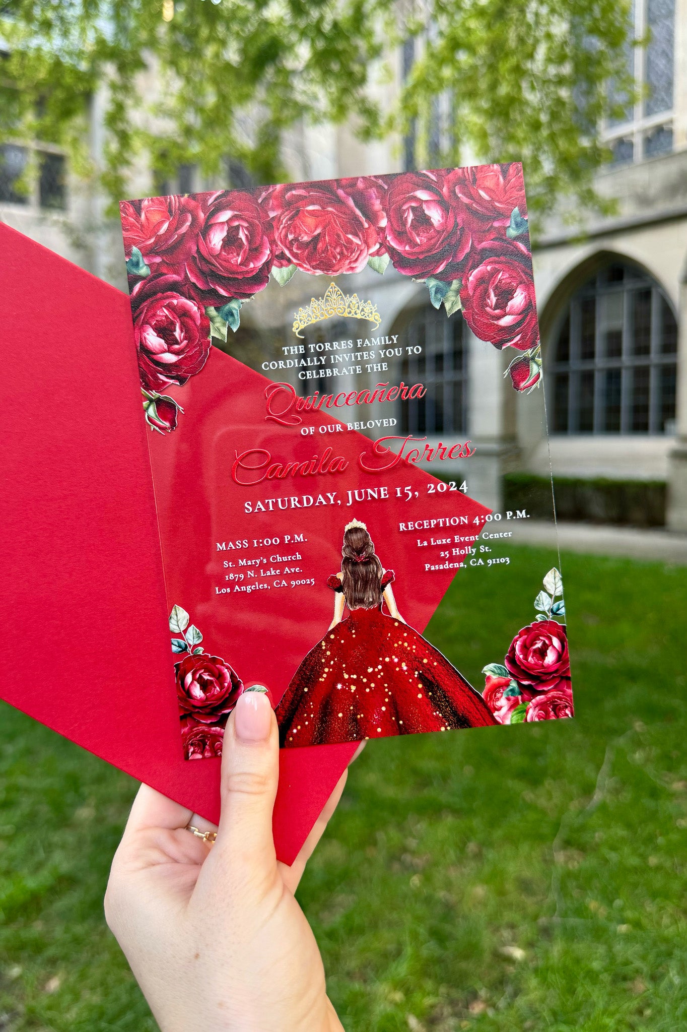 Mareli - Red Acrylic Quinceañera Invitations