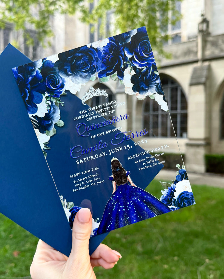 Mareli - Royal Blue Acrylic Quinceañera Invitations
