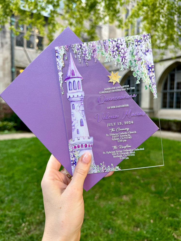 Rapunzel - Lavender Tower Acrylic Quinceañera Invitations
