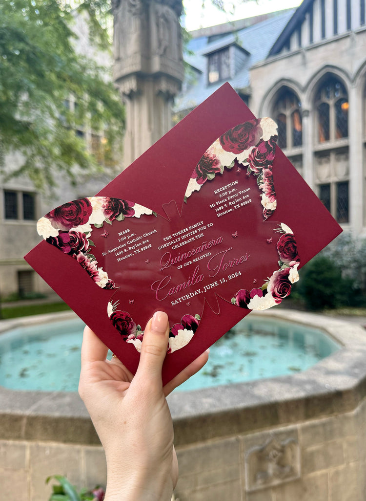Sofia - Burgundy Acrylic Quinceañera Invitations